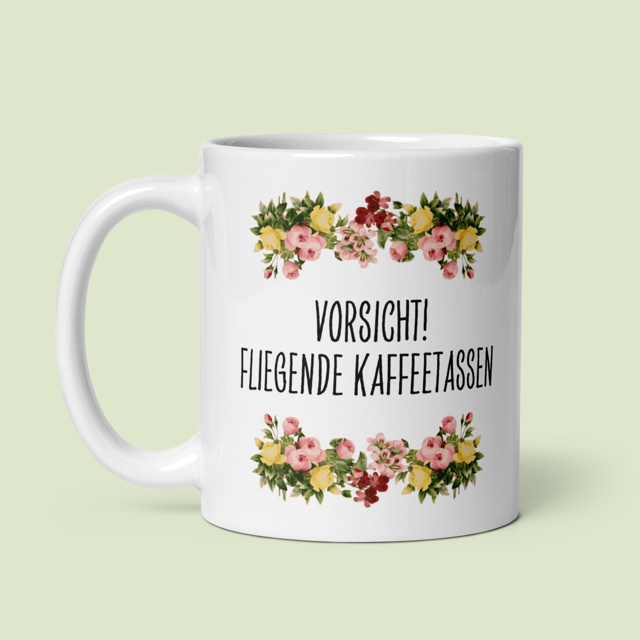 Tasse Büroausraster "Vorsicht! Fliegende Kaffeetassen"